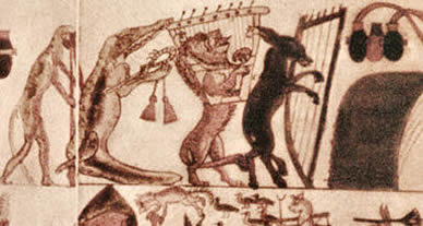 Vous pouvez voir un âne et un lion jouant de la lyre sur un pzpyrus du temps d'un Ramses (-1925 à -1069), ce symbolz ne date donc pas de l'époque romane, mais naturellement il n'a pas la même signification.