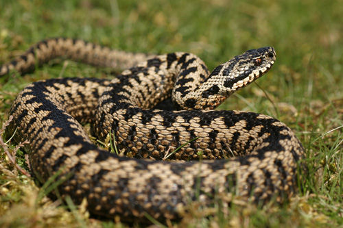 Le sculpteur a-t-il pris modèle sur cette vipère péliade ? Dans ce cas ce n'est donc pas une crête que l'on voit sur son corps, mais le dessin fait pas des écailles d'une autre couleur.